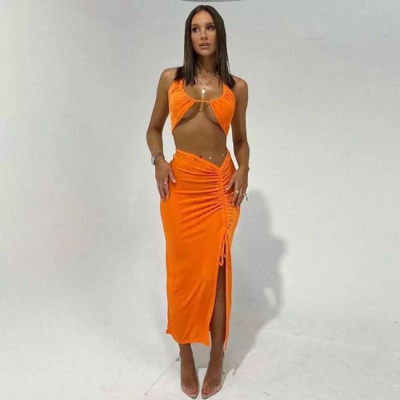 Lace Up Tank Top Slim Long Dress Skirt 2 Piece Set