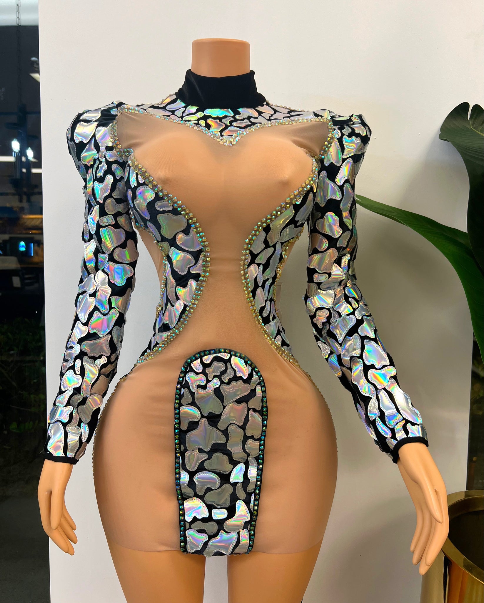 sparkly diamond Prom Bodycon Dress Nightclub Singer Dance Stage Wear