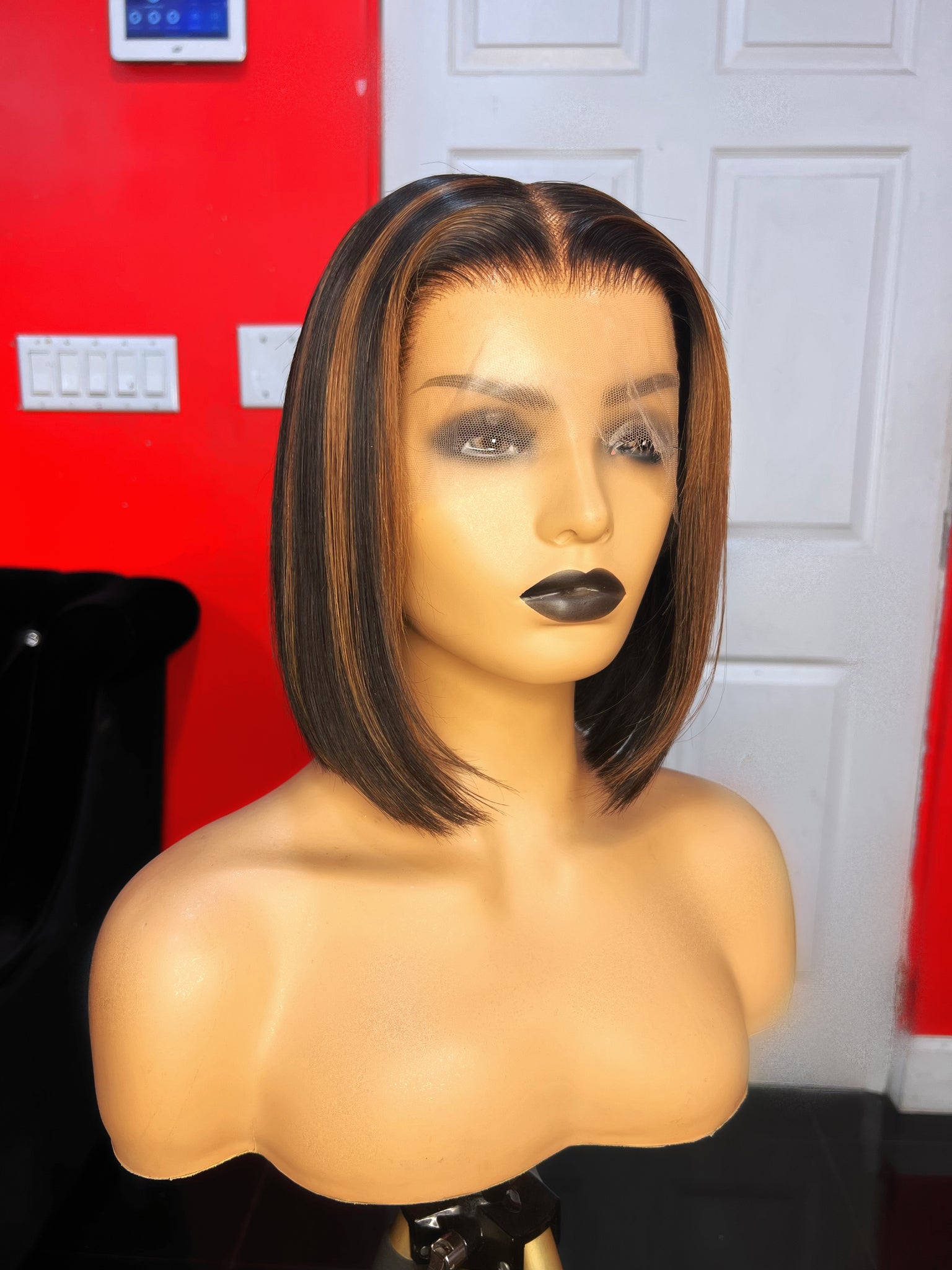 13X6 HD LACE FRONT WIG, Indian virgin hair, 12inch, 180% density, medium cap, bleached knots.