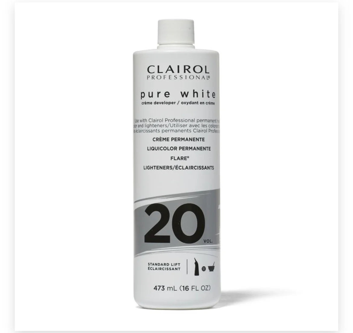 Clairol Pure White 20 Volume Creme Developer mixes easily with any Clairol Professional haircolor or lightener into a creamy consistency. Ideal for bowl-and-brush application. Provides a slightly thicker, more opaque mixture. Laboratory stabilized to guarantee consistent, predictable results. Designed for standard lightening action, superior gray coverage. For use with all Clairol Professional lighteners. Guaranteed fresh for three years