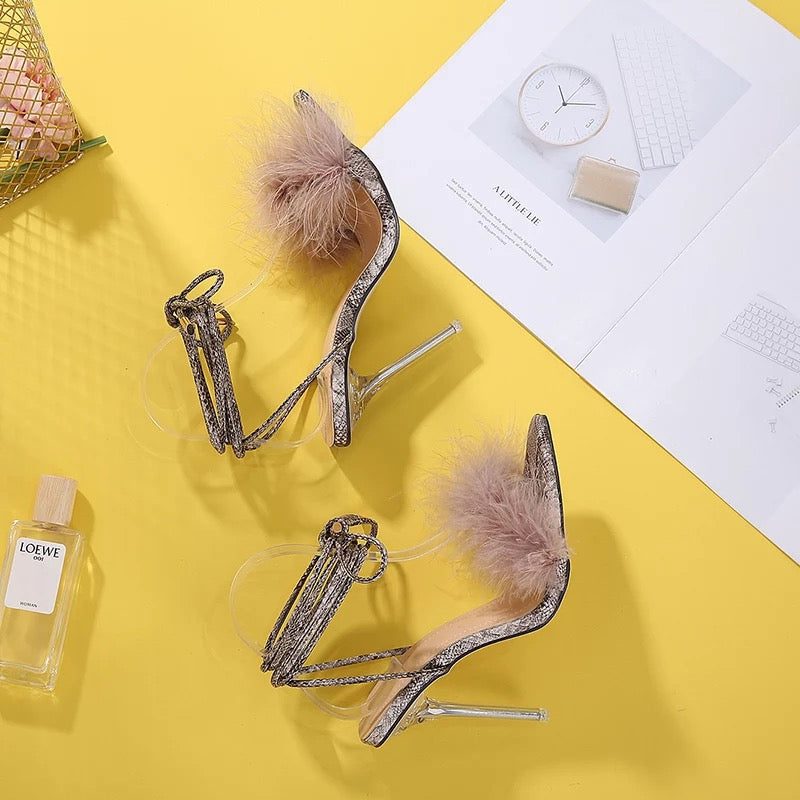 FEATHER ANKLE STRAP HIGH HEEELS