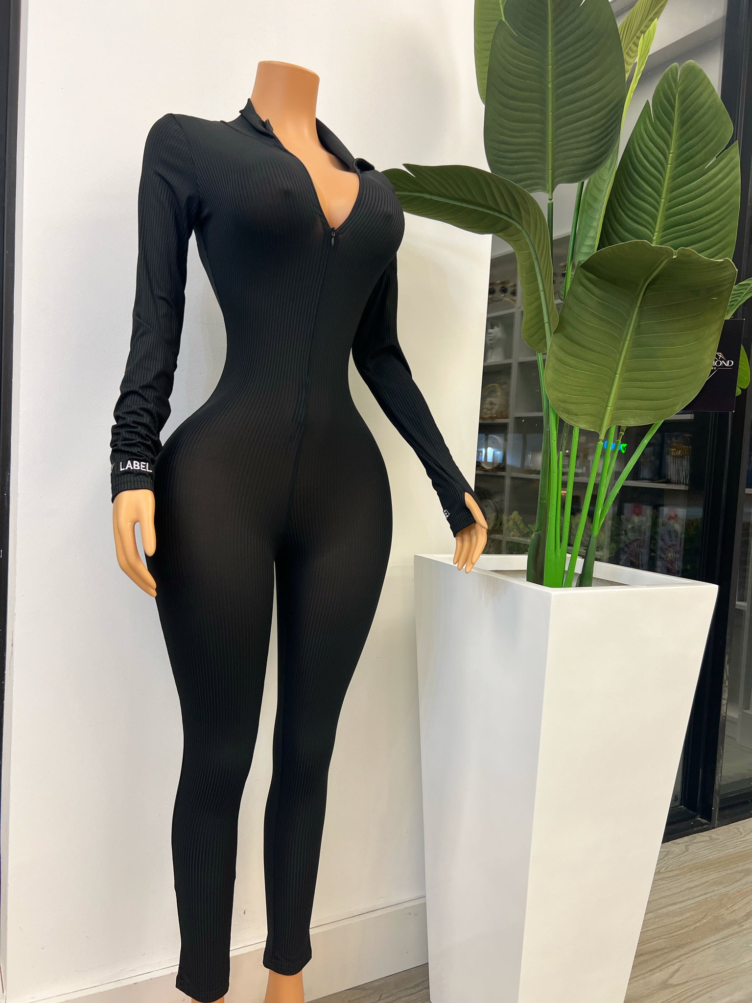 Lucky Label Embroidery High Neck Bodycon Jumpsuit