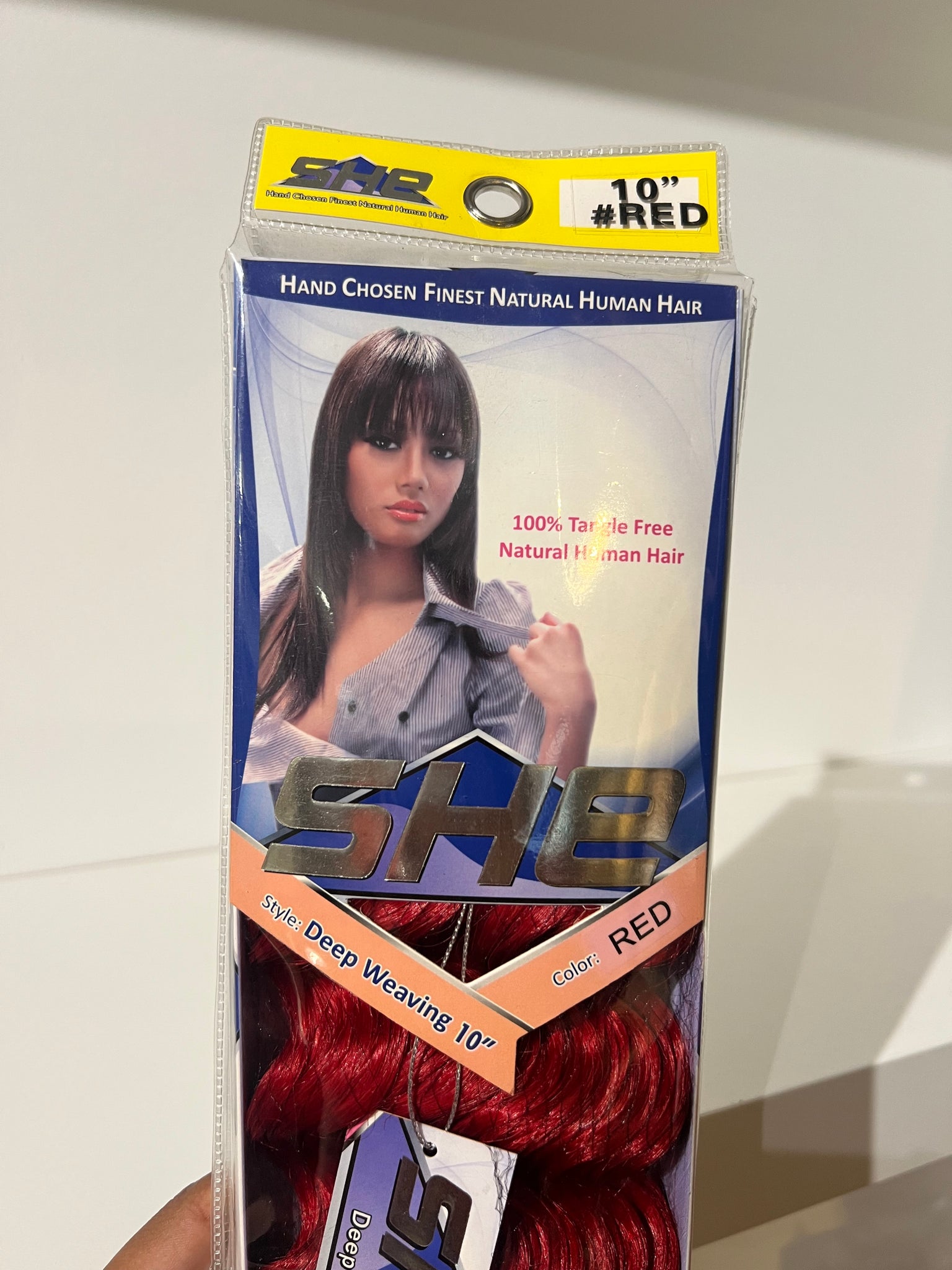 SHe Natural Human Hair Yaki deep Weaving 10 Inch Color red