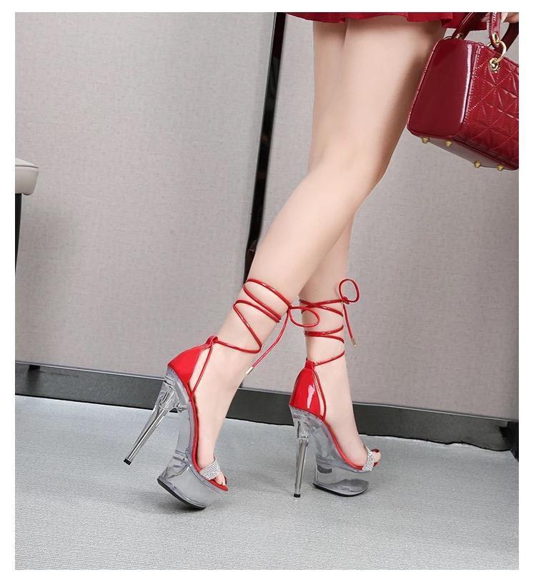 RED SLIM STRAP CLEAR HEELS