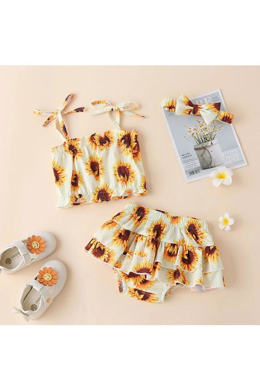 sunflower print tunic toddler girls coutfit infant baby clothing sets for summer.