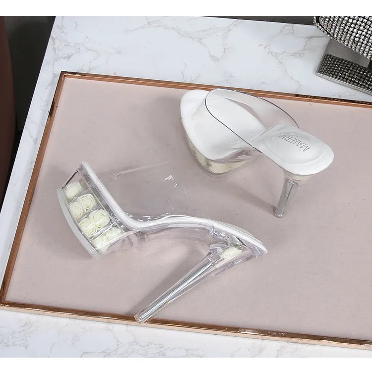 WHITE FLOWER CRYTAL CLEAR HEELS