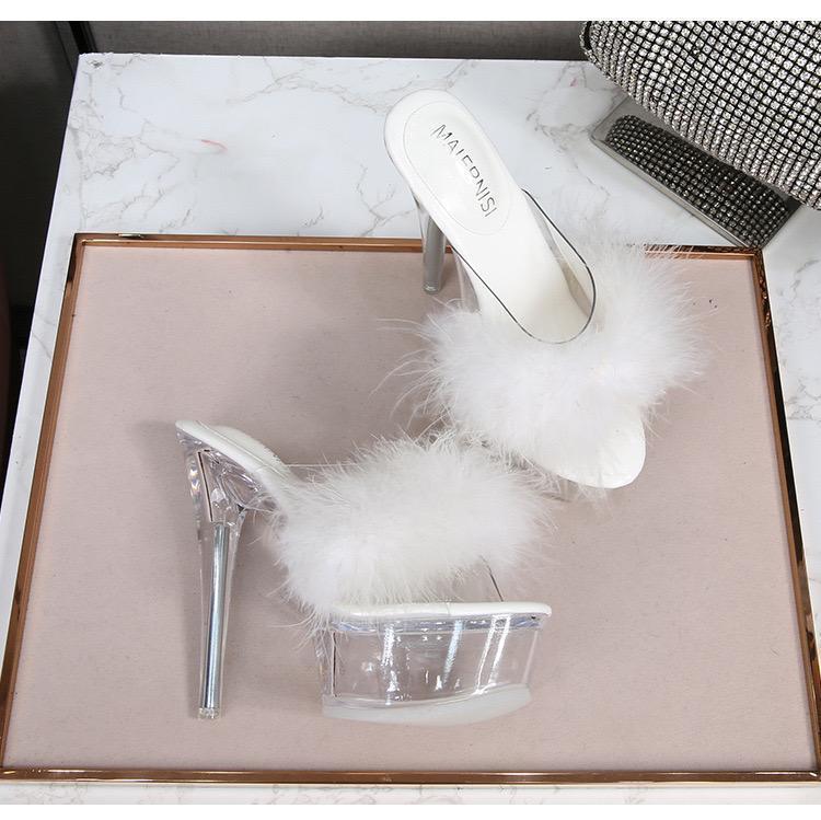 FUR SHOE, CLEAR HEELS